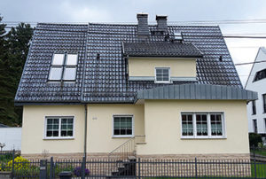 Ein Haus in Thüringen, vor 17 Jahren mit Lotusan von Südwest beschichtet, belegt eindrucksvoll die Wirksamkeit des Selbstreinigungseffektes in der Praxis: Die nach wie vor völlig intakte Fassade sieht auch heute noch aus wie frisch gestrichen. Das Wirkprinzip von Lotusan liegt in der besonderen Oberflächenstruktur: Sie ist der Lotuspflanze nachempfunden. Daher perlt Wasser an der mikrostrukturierten Fläche ab und spült Schmutzpartikel auf der Fassade einfach fort. Das Ergebnis: Die Außenwand bleibt sauber und trocken, Algen und Pilze haben keinen Nährboden – ohne Filmkonservierer oder Biozide. Dass dieser Effekt auch den Langzeittest besteht, zeigt das Haus in Thüringen. Seit der Fassadensanierung im Jahr 2000 erhielt es keinen weiteren Anstrich, dennoch ist die Fassade rein und zeigt keine Spuren von Algen und Pilzen.