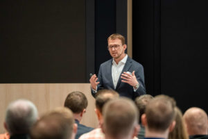 Den Abschluss bildete der Impulsvortrag „Zeit für Wandel! Die Zukunft meistern – im Miteinander“ von Gerriet Danz, der als renommierter Experte für Innovation, Wandel und Künstliche Intelligenz inspirierende Denkanstöße lieferte. Im Anschluss lud Teckentrup zum gemeinsamen Abendessen ein – ideal für partnerschaftlichen Austausch und Networking auf Augenhöhe. Dass Teckentrup mit dem Konzept den Kundennerv getroffen hat, zeigt auch das durchgängig positive Feedback der insgesamt 250 Teilnehmenden. Insbesondere der direkte und persönliche Austausch, sowohl mit dem betreuenden Außendienst als auch mit der Geschäftsführung, wurde als wertvoll empfunden, so dass sich alle Teilnehmenden eine Wiederholung wünschen.