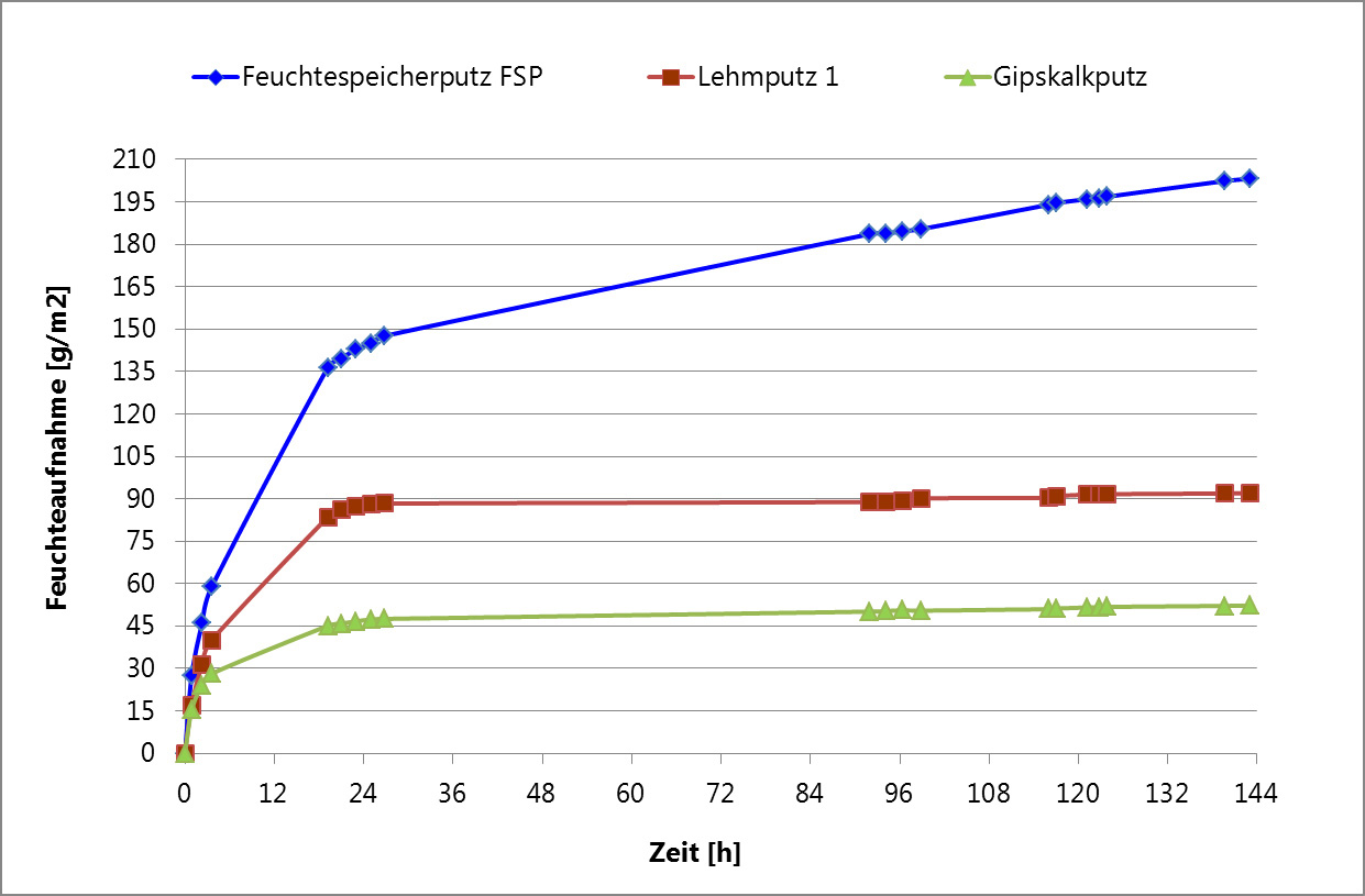 ihre Sättigungsgrenze erreicht, der spezielle Feuchtespeicherputz ist auch nach