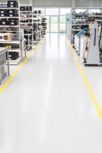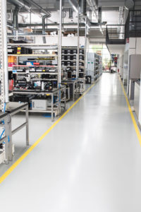 Der Boden in der neuen Produktionshalle der FSM AG erfüllt alle Anforderungen des ESD- und Personenschutzes.