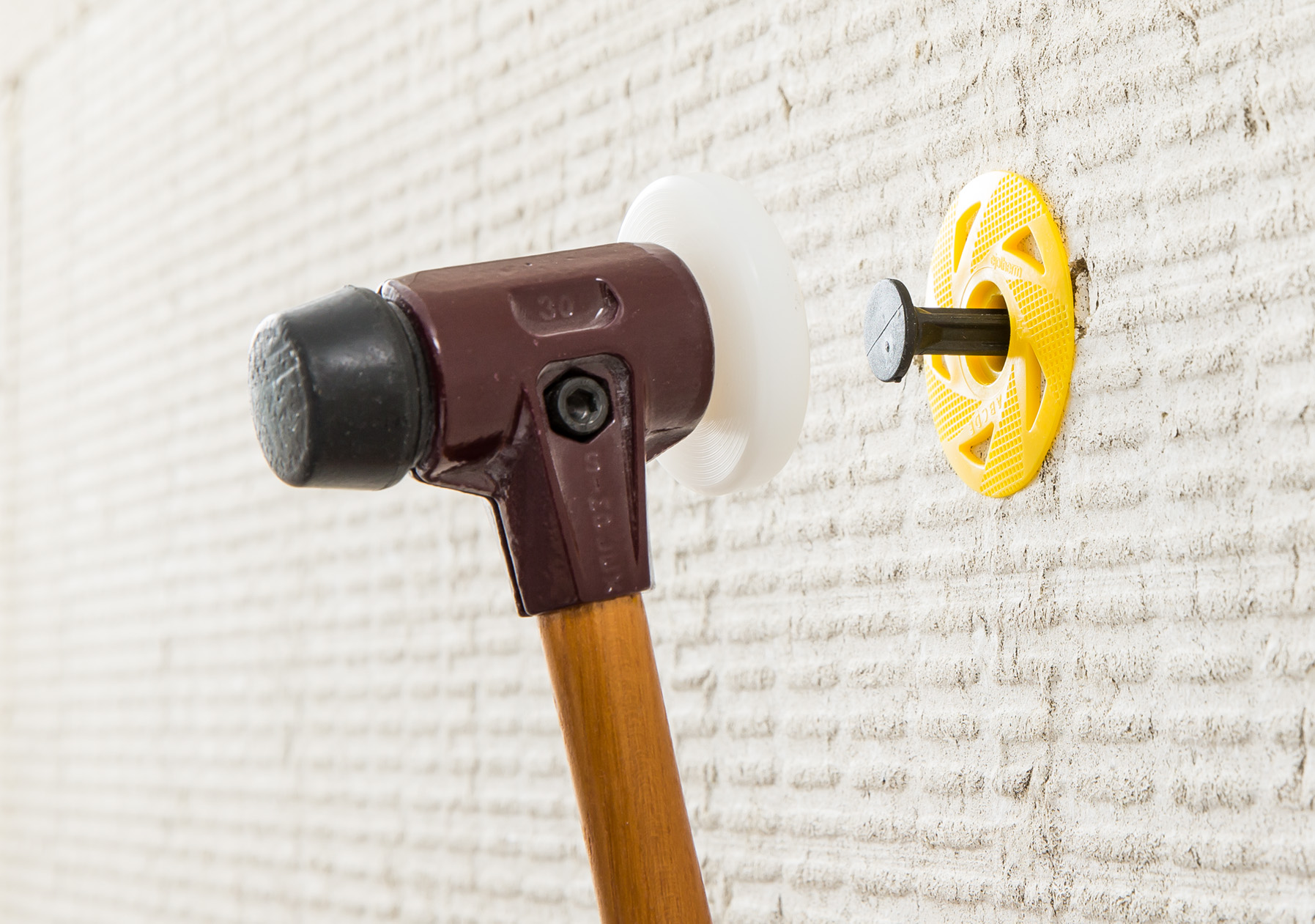 Der neue Sto-Schlagdübel Eco, eine Weiterentwicklung des Modells UEZ-SK 8/60, eignet sich als universelle Befestigung für WDV-Systeme. Für hohe Auszugslasten in jedem Untergrund sorgt das Stahl-Spreizelement mit dualer Spreizzone – sowohl in der Standard-Verankerungstiefe von 25 Milimetern, als auch bei kritischen Untergründen mit 45 Millimetern Tiefe. Ebenso universell verankert der Dübel unterschiedliche Dämmstoffe bis 260 Millimeter Dicke, also alle gängigen WDV-Systeme. Bei EPS-Systemen lassen sich zudem die Mineralwolle-Brandriegel gleich mit montieren. Eine Kunststoffschicht um den Stahlnagel (Chi-Wert 0,001 W/K) schließt Wärmebrücken aus. Vor dem Einschlagen wird der axial verschiebbare Teller auf die Dämmstoff-Ebene gebracht. Damit sitzt der Dübel auch bei weichen Dämmstoffen perfekt. Wirtschaftliche Vorteile: Der vormontierte Nagel beschleunigt das Setzen, Fehlgriffe sind ausgeschlossen – und die Lagerhaltung ist einfacher.