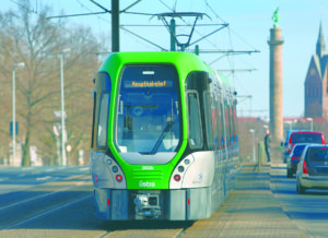 Neueste Hannoversche Straßenbahn – ausgestattet mit HANNO-Materialien.