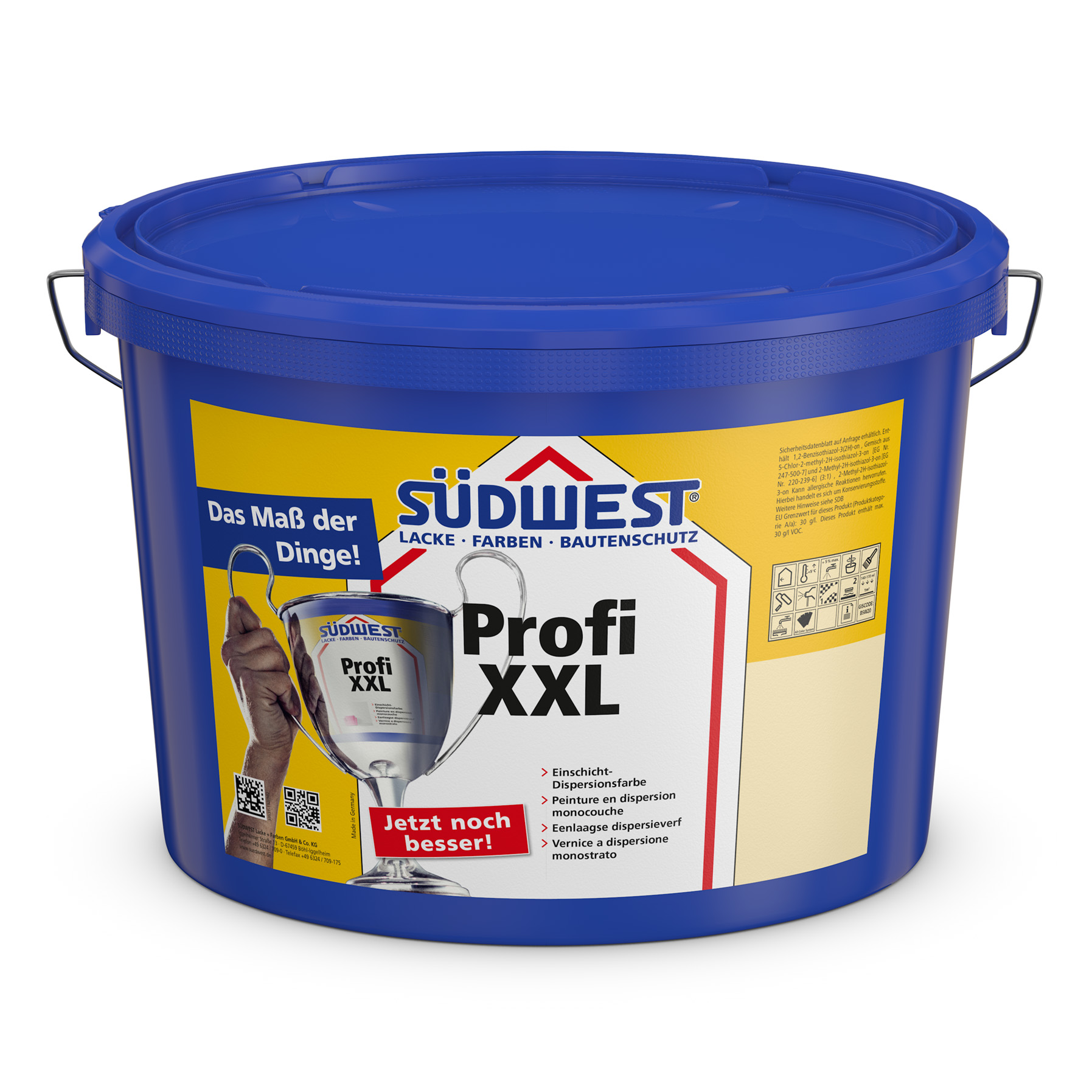 Die bewährte Innenraum-Premiumfarbe „Profi XXL“ von Südwest (Böhl-Iggelheim) wurde jetzt in zweifacher Hinsicht optimiert: Sie erfüllt nun die Anforderungen der Nassabriebklasse 2 und ist zudem auch in intensiven Farbtönen erhältlich. Unverändert bleiben ihre hohe Deckkraft und die leichte Verarbeitbarkeit. So erweitert sich das Einsatzfeld der Farbe – durch die zweithöchste Nassabriebklasse lassen sich die strapazierfähigen Wände problemlos reinigen und das erweiterte Farbspektrum ermöglicht es, wesentlich mehr Kundenwünsche bei der Farbtonwahl zu erfüllen. Das geht sogar besonders schnell und einfach, da „Profi XXL“ vor Ort beim Händler über die All-Color-Mix-Station abgemischt wird.