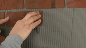 Leichte Verarbeitung: Die Klinker werden im Floating-Buttering-Verfahren auf die Wand geklebt.