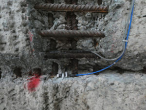 Bei diesem Instandsetzungsprinzip K (Kathodischer Korrosionsschutz) wird zunächst der Untergrund vorbereitet, Korrosionsstellen lokal instandgesetzt und beschädigte Bewehrungsstähle ersetzt. Anschließend werden Anodengitter und Referenzanoden am Betonuntergrund befestigt und der Einbettungsmörtel appliziert.