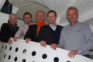 Die Jury des Lotusan Fassadenpreises 2010 (v.l.): Dipl.-Des. Antje Möbius, Dipl.-Ing. Klaus Friesch, Dipl.-Ing. Manuel Schupp, Dipl.-Betriebswirt Markus Heineke, und Prof. Dr. Wilhelm Barthlott.
