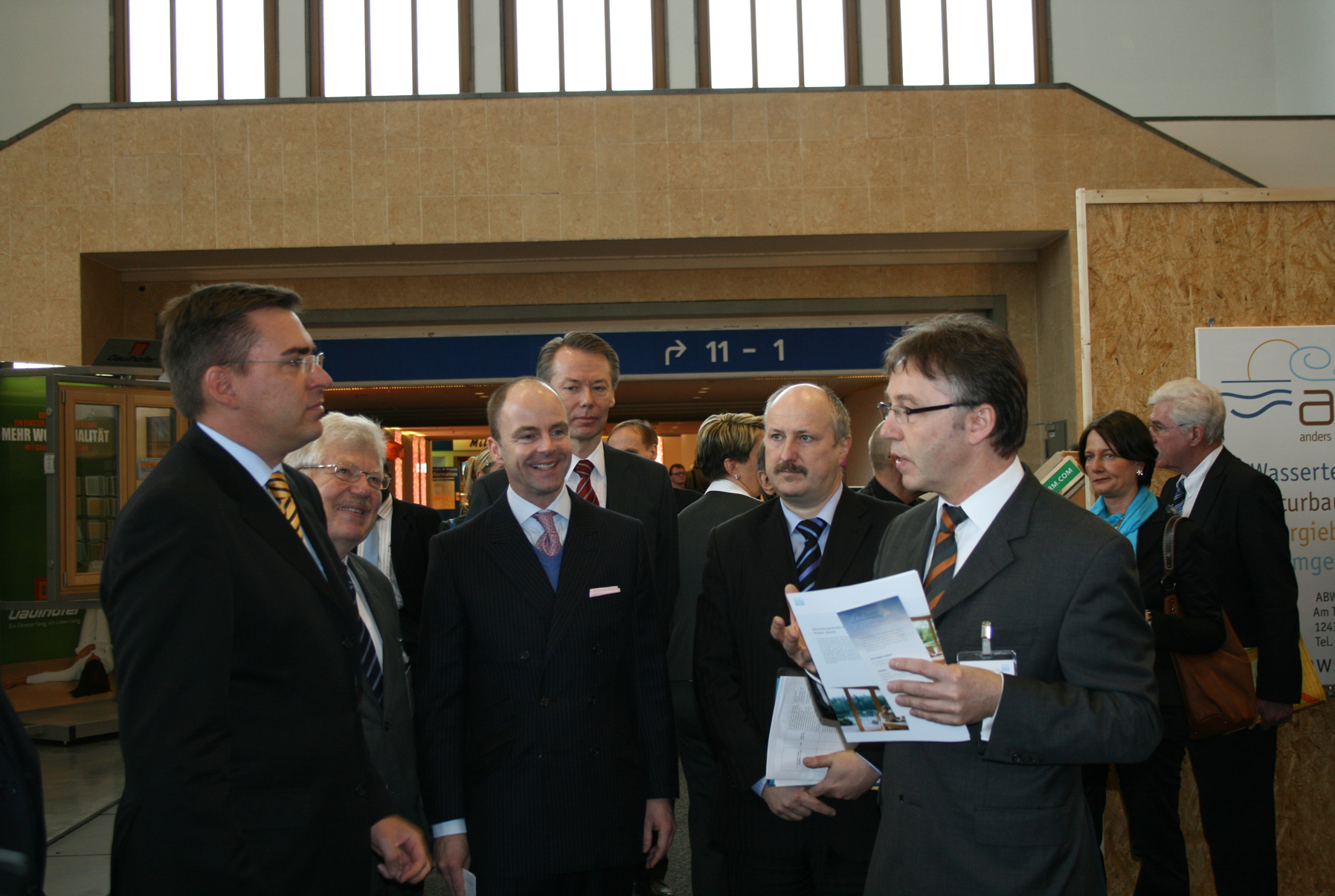 Das schaltbare Sonnenschutzglas EControl verbindet Funktionalität und Design. Vielseitig einsetzbar in Bürogebäuden, Privathaushalten, Atrien und Wintergärten – EControl Sonnenschutzglas lässt sich problemlos in handelsübliche Rahmenprofile oder als Überkopfverglasung verbauen. Per Knopfdruck – oder voll automatisch – wird die Licht- und Energiedurchlässigkeit reguliert: Die Scheibe lässt sich in fünf Stufen abdunkeln, dadurch dringt weniger Sonnenwärme und -licht in den Raum. Das ist Sonnenschutz der eleganten Art und die Sicht nach draußen bleibt frei. Mit einer hochwertigen Wärmeschutzbeschichtung schützt das Glas im Winter vor Wärmeverlusten“, erklärt Manfred Dittmar, EControl-Glas Gesellschafter und Vertriebsleiter. Auf der bautec 2010 stellte das Unternehmen verschiedene Aufbauvarianten vor. Jan Mücke, Parlamentarischer Staatssekretär im Bundesministerium für Verkehr, Bau und Stadtentwicklung (BMVBS), Dipl.-Ing Hans-Dieter Hegner, Baudirektor (BMVBS), Günther Hoffmann, Leiter der Abteilung Bauwesen, Bauwirtschaft, Bundesbauten (BMVBS) und Dr. Christian Göke, Geschäftsführer der Messe Berlin ließen sich auf ihrem Eröffnungsrundgang EControl Sonnenschutzglas von Manfred Dittmar am Messestand erläutern.