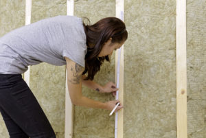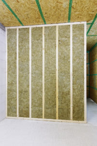 Holzständerwand im Rastermaß 40 Zentimeter.