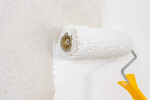 SoLevell Calce FS als Filzputz erhält einen zusätzlichen Schutzanstrich der silikatische Innenfarbe StoColor Sil Comfort