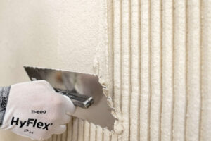 Auftrag des Klebemörtels StoLevell Calce FS mit der Zahntraufel Vibra S-4.