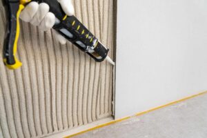 Die Platten werden an den Stößen mit StoColl Fix verklebt …