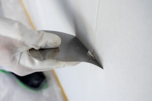 … und überstehender Kleber mit dem Spachtel abgezogen