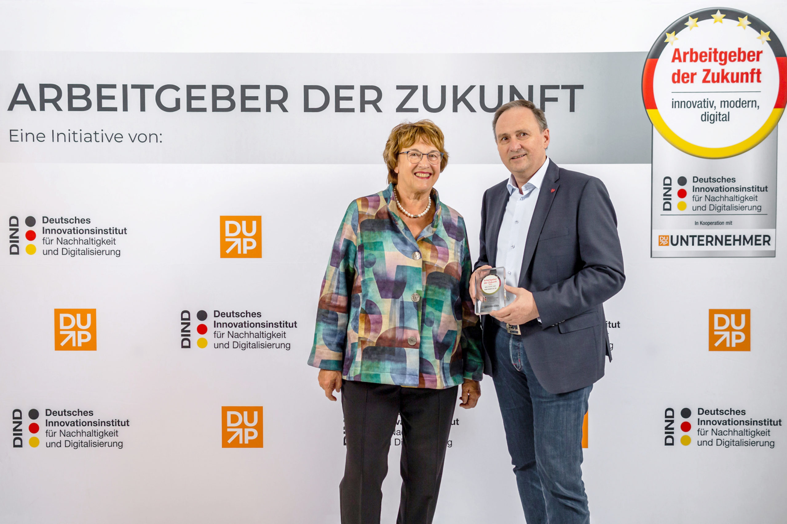 Zukunftsorientierung und Qualität als Arbeitgeber – dafür werden Unternehmen durch das Deutsche Innovationsinstitut für Nachhaltigkeit und Digitalisierung (DIND) mit dem Preis „Arbeitgeber der Zukunft“ ausgezeichnet. Unterstützt wird die Initiative von der ehemaligen Bundeswirtschaftsministerin Brigitte Zypries. Die Auszeichnung hilft Unternehmen, sich im „War for Talents“ zu positionieren, um trotz Fachkräftemangels Talente zu gewinnen und zu binden. Geehrt werden innovative Unternehmen mit klarer Digitalisierungsstrategie, die Nachhaltigkeitsziele verfolgen und attraktive Arbeitsbedingungen bieten. Dabei liegt das Augenmerk auf moderner Führung und Mitarbeiterfreundlichkeit. So fließen etwa flache Hierarchien, flexible Vergütungsmodelle oder Mitarbeiter-Benefits sowie individuelle Fort- und Weiterbildungsmöglichkeiten in ein ganzheitliches Bild ein, das anhand einer Bewertungsmatrix erstellt wird, die mit Hilfe des Inputs von Expertinnen und Experten aus Wirtschaft und Wissenschaft erarbeitet wurde. Die Preise werden im Rahmen diverser Netzwerkveranstaltungen verliehen.