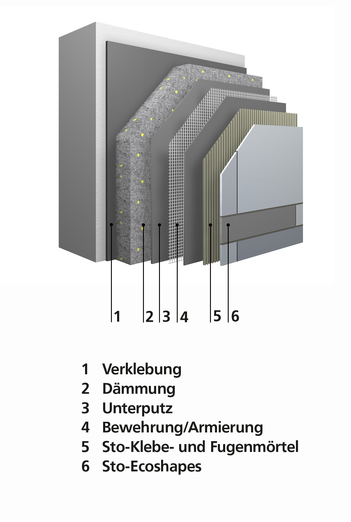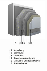 Systemaufbau mit Sto-Ecoshapes (mit Polystyroldämmung)