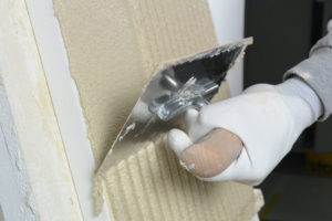 Bei der Entwicklung von Innendämmsystemen geht es darum, Strategien zu entwickeln, die verschiedenen bauphysikalischen Problemstellungen sicher und dauerhaft zu lösen. Neben dem Taupunktmanagement geht es darum, Konvektion zuverlässig zu verhindern. Konvektion beschreibt in diesem Kontext, dass eine Innendämmung hinterströmt wird. Dabei gelangt warme Luft hinter das System. Dort kann diese abkühlen, was ein Ansteigen der relativen Luftfeuchte zur Folge hat, was wiederum zu Schimmel hinter dem Dämmsystem führen kann. Vom Prinzip her ein Taupunktereignis. Zugleich wird die Dämmung zu einem gewissen Grad ausgehebelt, was die Dämmleistung des Systems verschlechtert. Dieser Mechanismus wird bei den Innendämmsystemen von Sto unterbunden, indem die Wärmedämmplatten im Floating-Buttering-Verfahren mit der Außenwand verklebt werden.