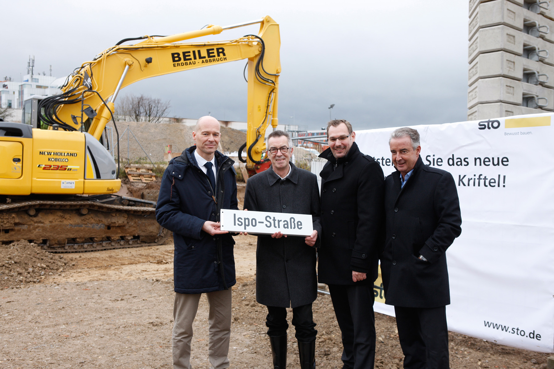 Die für den Neubau notwendige Erschließung des Industriegebiets wird den Namen „Ispo-Straße“ erhalten. Die Gemeinde Kriftel zollt damit der lange Zeit das Gewerbegebiet prägenden Firma Tribut und erinnert zugleich an die gemeinsame Geschichte der Idealen Soliden PutzOberfläche (ISPO), die ganz am Anfang der Sto-Gruppe stand, die heute mit über 5.300 Mitarbeitern in 48 Unternehmen in 36 Ländern präsent ist. In dem nun neu entstehenden VerkaufsCenter in Kriftel werden 14 Arbeitsplätze untergebracht sein.