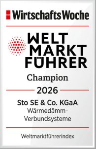 Zum siebten Mal ist die Sto SE & Co. KGaA Weltmarktführer für Wärmedämm-Verbundsysteme. Auch 2026 trägt das Unternehmen diesen Titel, von der Wirtschaftswoche vergeben.