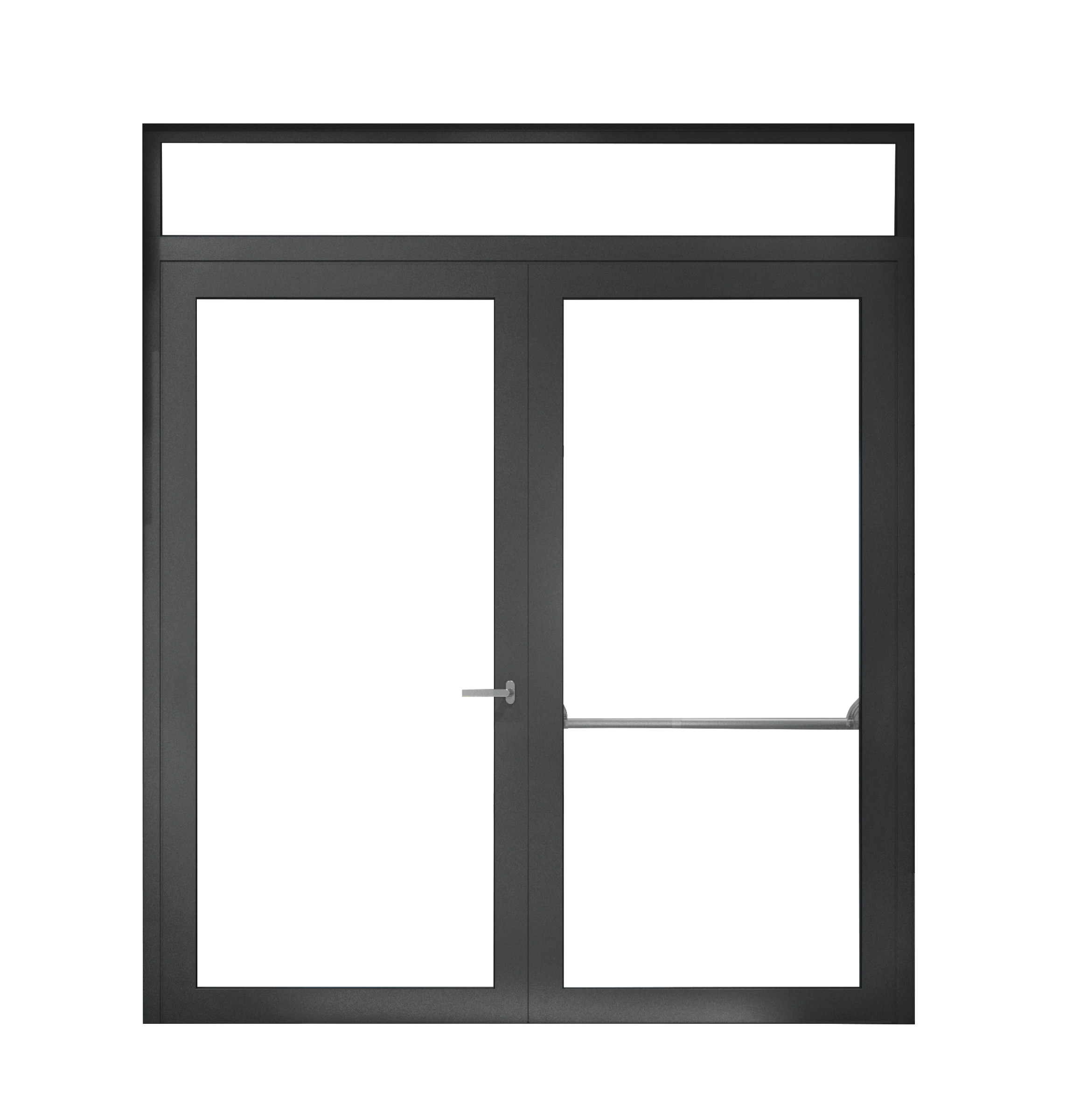 Für das Rohrrahmen-System stehen Oberlichter und Seitenteile zur Wahl, die Türen können zudem mit Fluchttürstangen ausgerüstet werden.