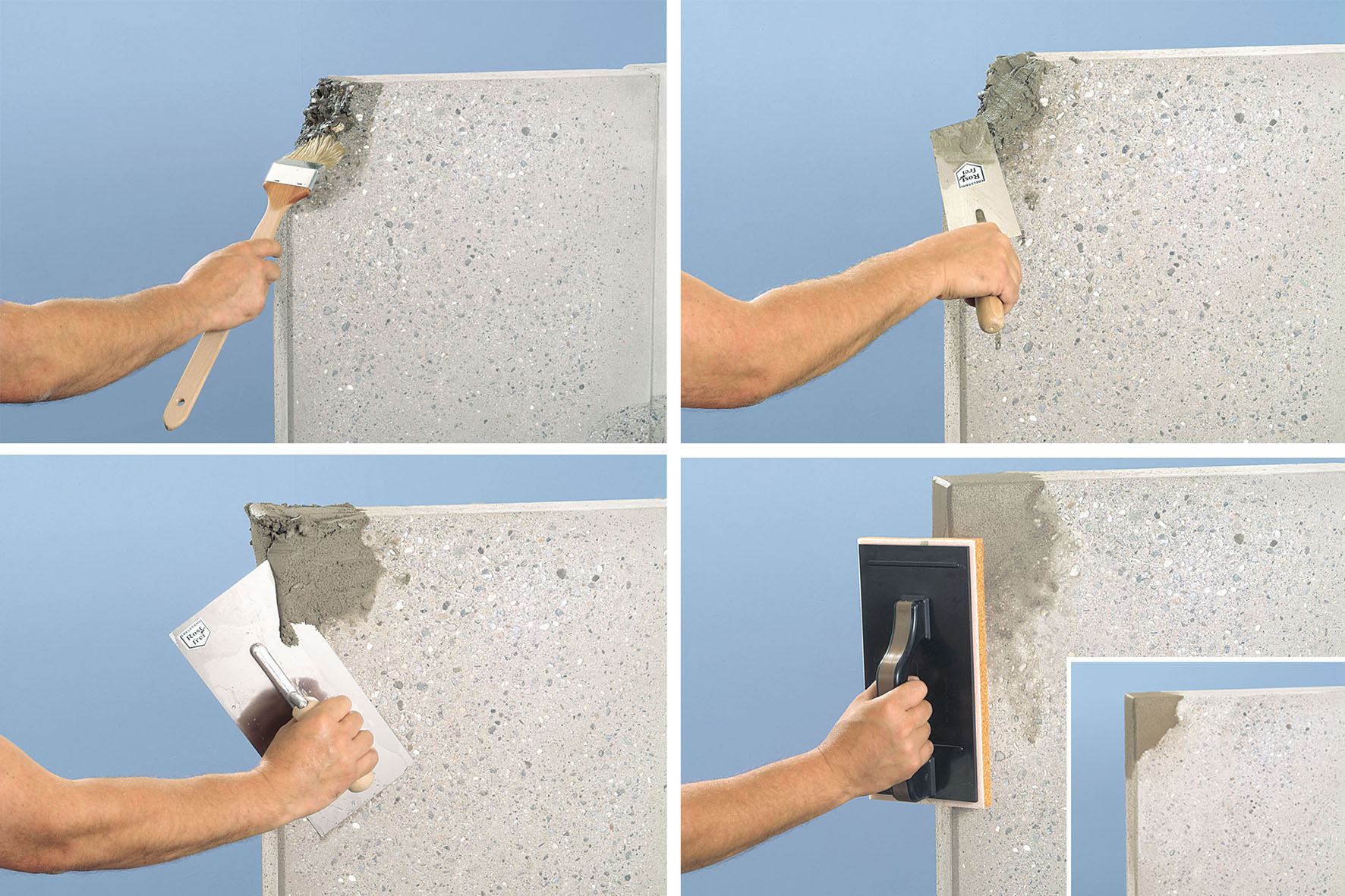 Das Einsatzgebiet reicht von der Balkonkragplatte über Treppen bis zu Keller- und Industrieböden. Ebenso breit ist das Leistungsspektrum: vom Reprofilieren von Schadstellen über Ausbilden von Hohlkehlen und Gefällekeilen und Beispachteln bis hin zu Höhenversätzen und Gefällen.