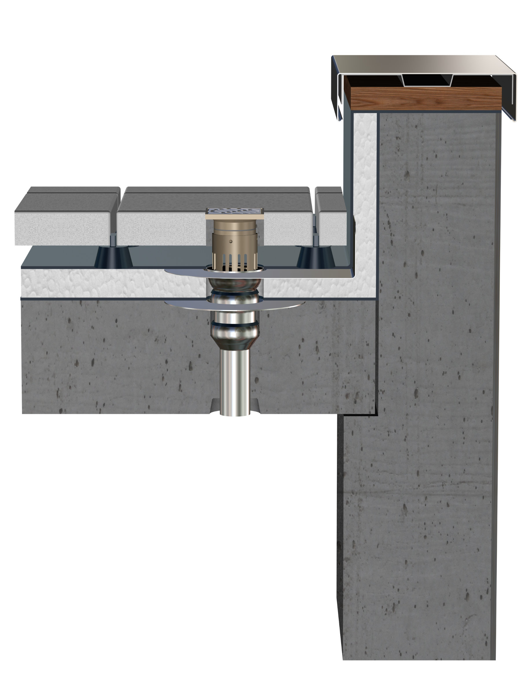 Platz und Material sparen mit schlanken Ablaufsystemen: Die Serie V ist ein sicheres Ablaufsystem für Balkone, das auch in der Nennweite DN 50 zuverlässig das Niederschlagswasser abführt. Loro zeigt auf der BAU in Halle B2/502 viele Neuheiten für die Balkon- und Flachdachentwässerung