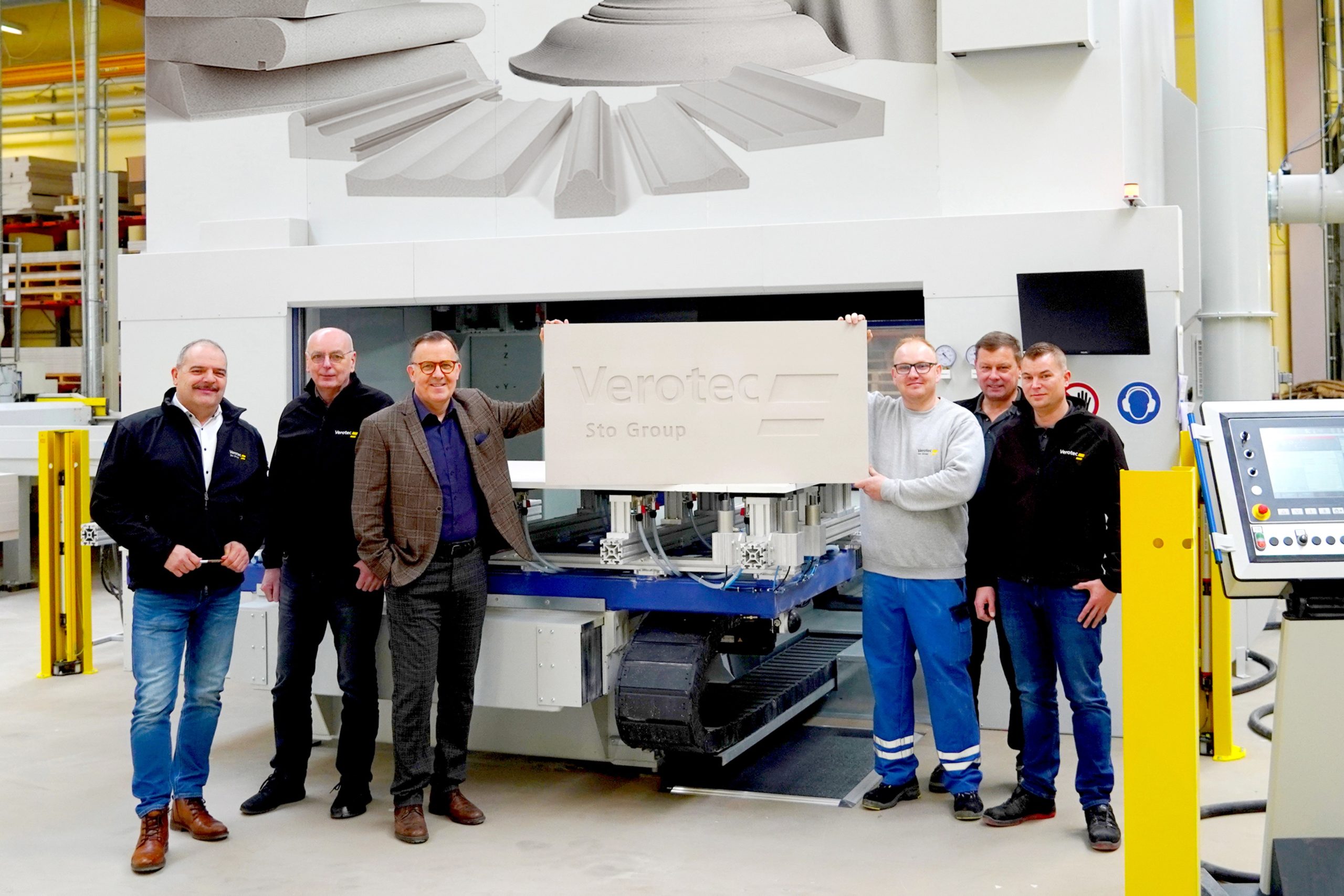 Nach einer gut zweimonatigen Testphase ging jetzt das neue Bearbeitungszentrum für 3D-Fassadenelemente bei Verotec in Lauingen in den Regelbetrieb. Die neue Anlage ist eine CNC-gesteuerte Fräsmaschine mit zwei Arbeitsflächen für die Sonderprofilproduktion von StoDeco-Profilen und erweitert die Kapazität für dreidimensionale Fassadenelemente.