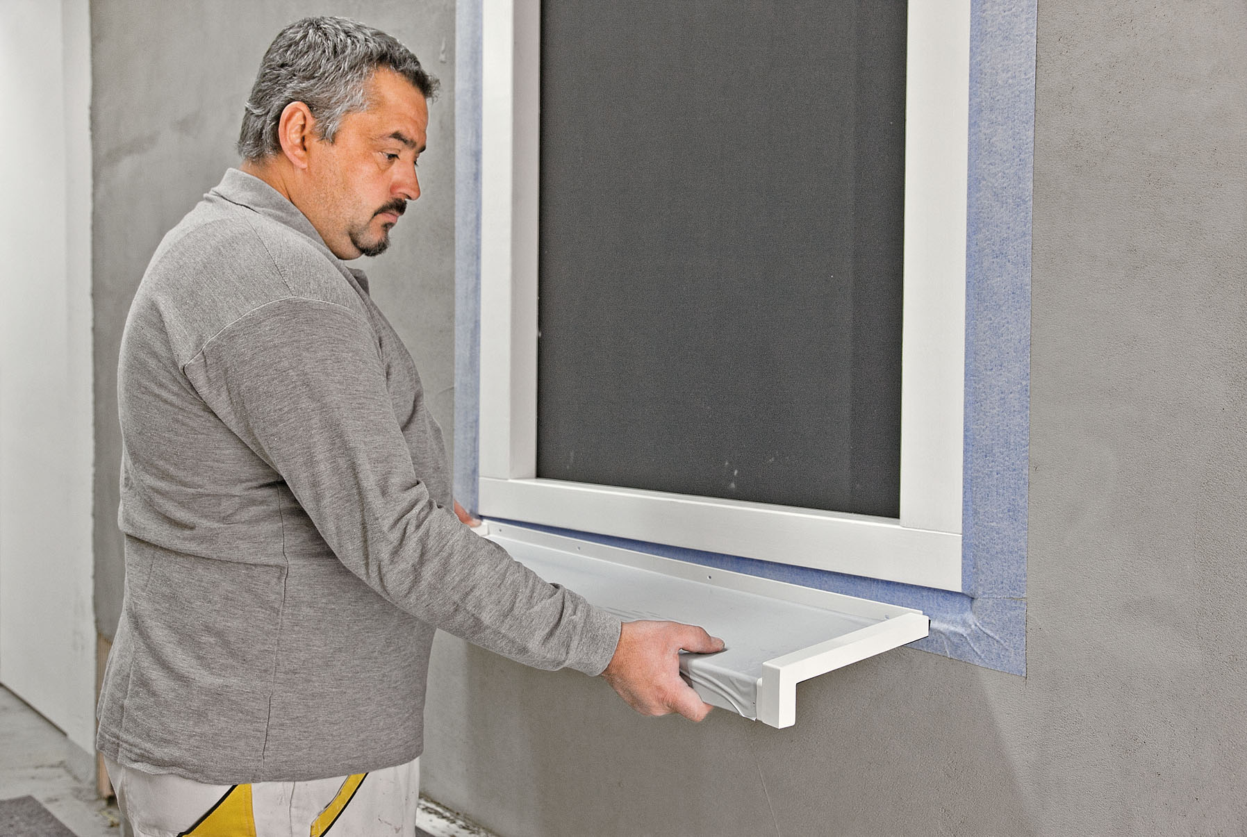 Steht ein nachträglicher Einbau einer Fensterbank an, erhält die Brüstung in der Regel eine zweite Dichtebene. Die passende Fensterbank dazu heißt StoFentra Duo. Sie besteht aus einem Fensterbankprofil mit zusätzlichen Gleitabschlüssen. Die Länge des Fensterbankprofils wird so berechnet, dass es sich zwischen den Gleitabschlüssen bewegen kann. Dafür werden die Abschlüsse zunächst am Fensterrahmen fixiert, dann das Fensterbank- und schließlich die seitlichen Abdeckprofile montiert. Damit eignet sich das System auch für die „Kalte Sanierung“, bei der lediglich der Putz- beziehungsweise der Anstrich saniert wird – immer in Verbindung mit einer zweiten Dichtebene.