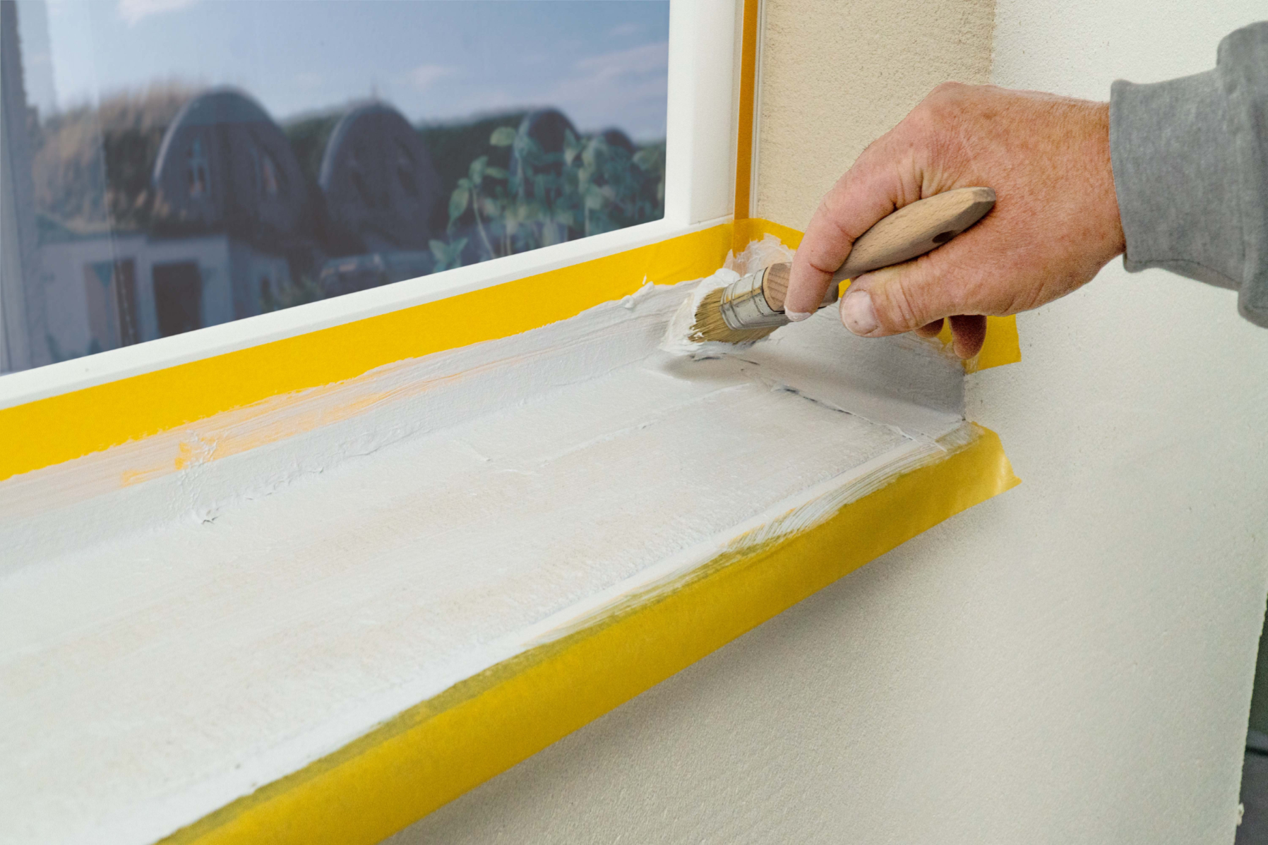 Bei Wärmedämm-Verbundsystemen steckt der Teufel im Detail. Nur wer die Anschlüsse technisch sauber ausführt, erzielt ein dauerhaft funktionierendes System. Die neue Abdichtungsmasse StoSeal L 110 erleichtert die WDVS-Verarbeitung an Fenstern. Sie wird an der Brüstung unverdünnt auf den Unterputz aufgestrichen. Zur Ausbildung einer zweiten Dichtebene kommt das faserverstärkte Material auch unterhalb von Fensterbänken zum Einsatz. Das einkomponentige, pastöse Material bildet eine wasserdichte, elastische Membran, durch die keine Feuchtigkeit ins System eindringt. Aufgrund seiner Elastizität eignet es sich auch zur Überbrückung von kleinen Rissen (˂1,5 mm).