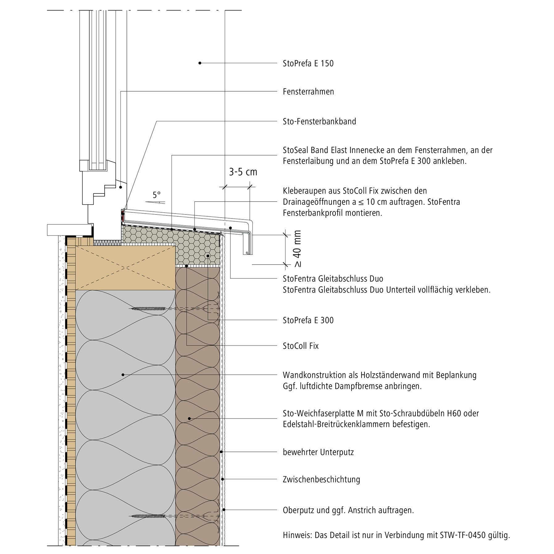 Die Qualität des Ganzen entscheidet sich stets an seinen Details. Das gilt auch für Wärmedämm-Verbundsysteme (WDVS) und vorgehängte hinterlüftete Systeme (VHF) im Holz- und Fertighausbau. Im Rahmen der Dach + Holz 2020 präsen­tierte das „Kompetenzcenter Industrie“ von Sto zwölf ausge­klügelte Detaillösungen für Geschossübergänge, Regenfall­rohre, Abdichtungen oder die Befestigung mittelschwerer bis schwerer Bauteile wie Geländer oder Markisen. Hierbei handelt es sich um einen kleinen Ausschnitt aus einer großen Detail-Vielfalt, die Sto für den Holz- und Fertighausbau bereithält. Auf der Website www.stoindustrie.de/details sind mehr als 200 An- und Abschlussdetails zum Download zu finden. Sie zeigen die optimalen, systemkonformen Varianten für den Anschluss einer Fensterbank oder eines Rollladenkastens, präsentieren Sockelausprägungen und Dachanschlüsse, informieren über Balkonbefestigungen, Gebäudedehnfugen und vieles mehr.