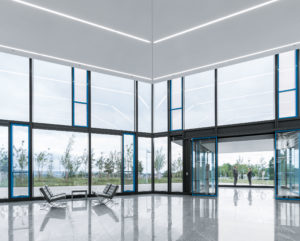 „ECONTROL ist eine zukunftsweisende Komponente für eine klassische Fassadenlösung aber mit High-Tech-Ansprüchen“, sagt Andreas Beccard von ˈpriedemann fassadenberatungˈ. Aufgrund der exponierten Lage, der Gebäudekubatur, der Wirtschaftlichkeit und des FESTO-eigenen Corporate-Identity fiel die Wahl beim AutomationCenter bewusst auf eine einschalige, vollständig vormontierte Elementfassade – eine vorgehängte zweite Glasebene oder Raffstoren kamen für das Gebäudekonzept nicht infrage.